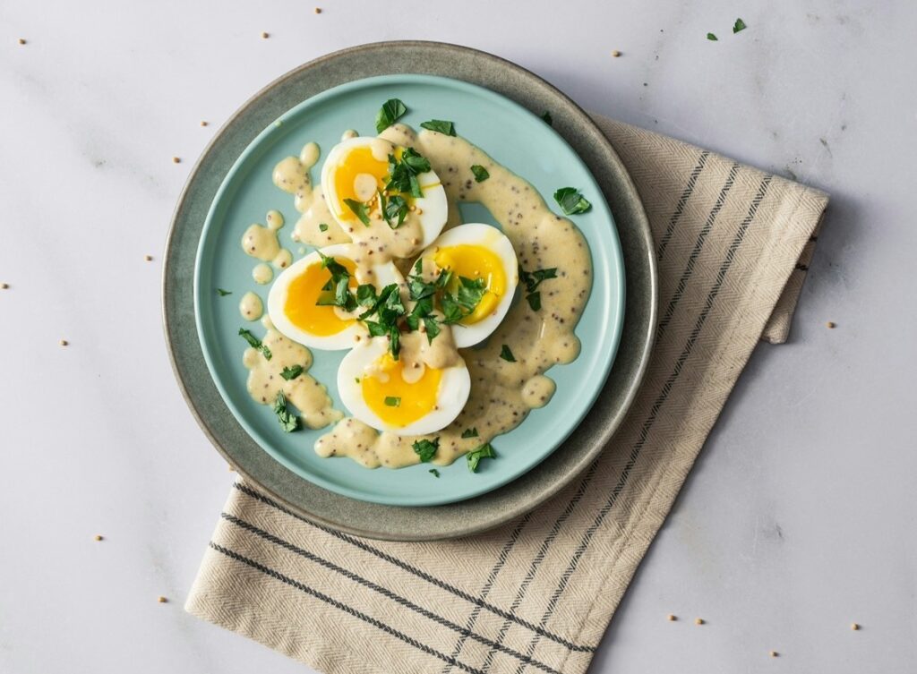 ゆで卵ににんにくマヨネーズをかけて黒胡椒をガリっとするだけ