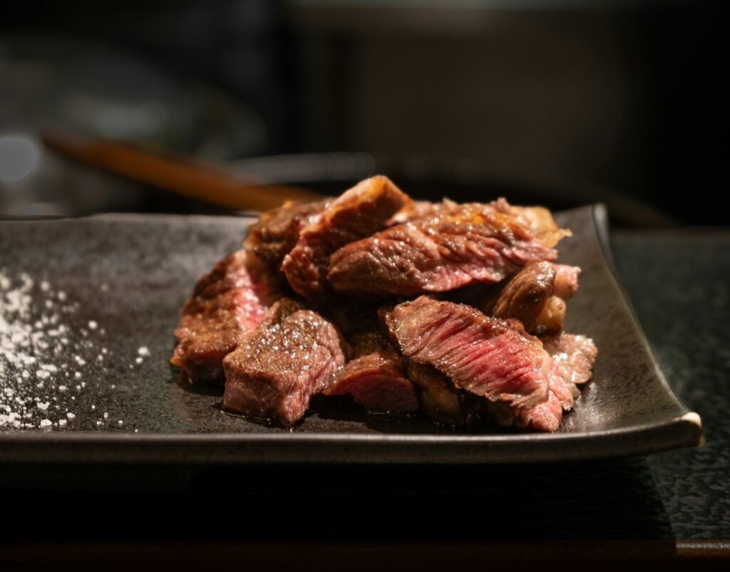 ミディアムレアに焼いたステーキにちょこんっとつけて